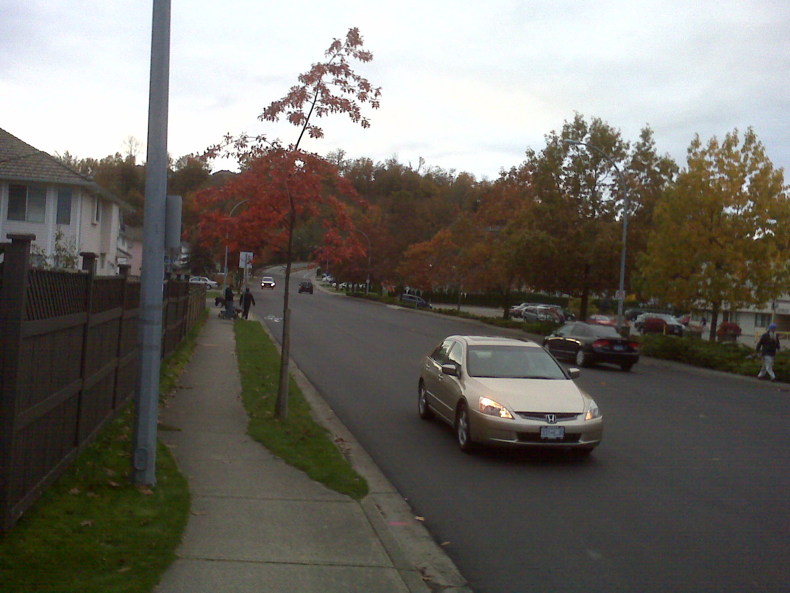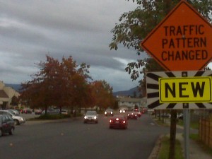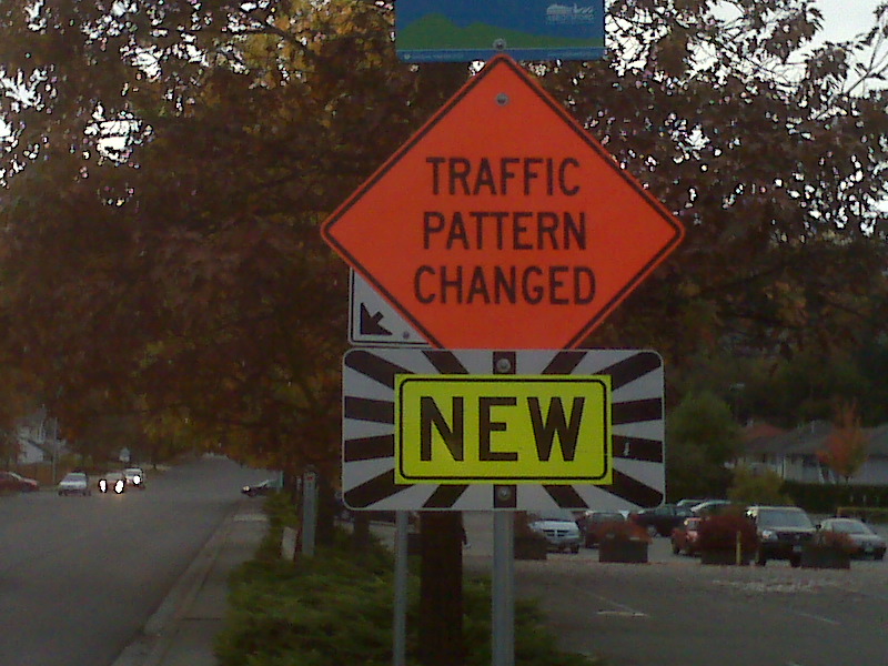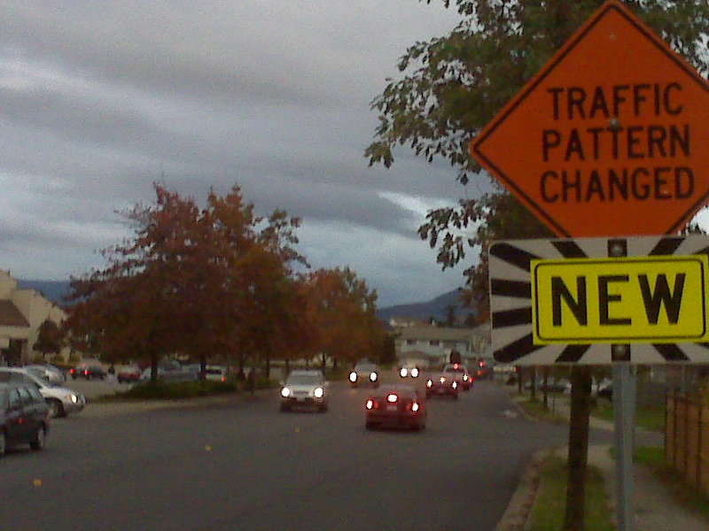 Yes the road markings, the lines, painted onto the road to direct traffic flow are now gone rather than merely faded into obscurity. Given that road markings/lines that are hard to see in the day and invisible at night or in rain are the norm rather than the exception on roads in the City of Abbotsford the fact that the road markings are now gone does not constitute a “Traffic Pattern Change”. Driving on roads made dangerous by the poor quality or missing road markings/lines is certainly not a NEW condition in Abbotsford.