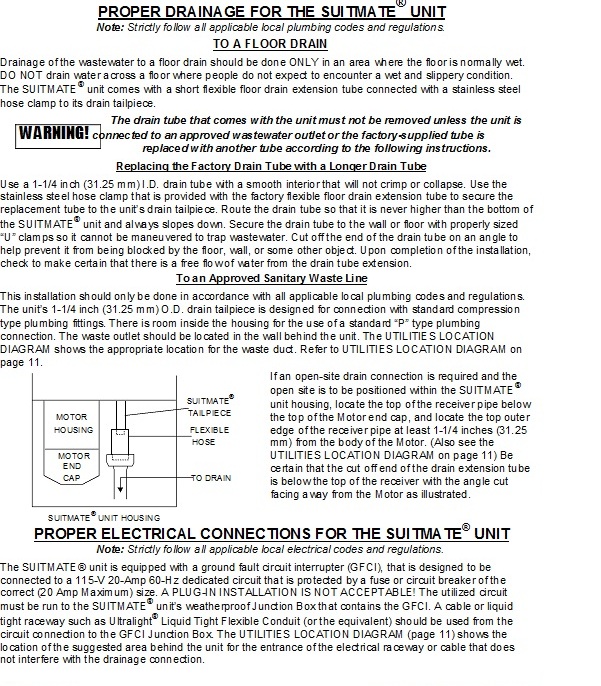 Contained in the installation instructions under the heading PROPER LOCATION FOR THE SUITMATE® UNIT is the prohibition: