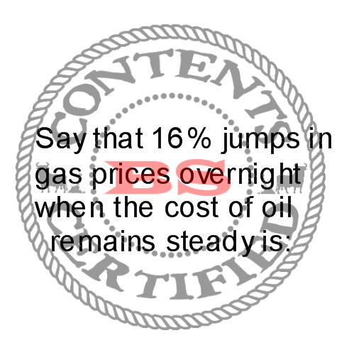Oh wait, it is winter and there have been some unusually chilly days around. Price went up because of all the extra oil needed for heating………although, wouldn’t that mean the price should go down because of all the unseasonably warm days such as those that had Torontonians at the beach in shorts in January?